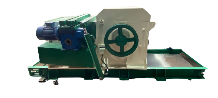 Wood materials enter the chipper cavity through the conveyor system and the feeding port. Wood materials are chipped into wood chips under the shearing stress of the high-speed rotating flying knifes and the bed knife installed on the machine base. The qualified chips pass through the screen holes below the knife roll and are discharged through the discharging port. A little larger wood chips, which cannot pass through the screen holes, continue to be chipped again.